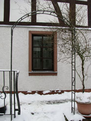 Der Hof ist durch ein Tor zur Straße hin gesichert.